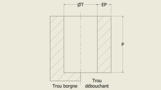 | Taraudage | Longueur | Ø Trou | Profondeur mini |